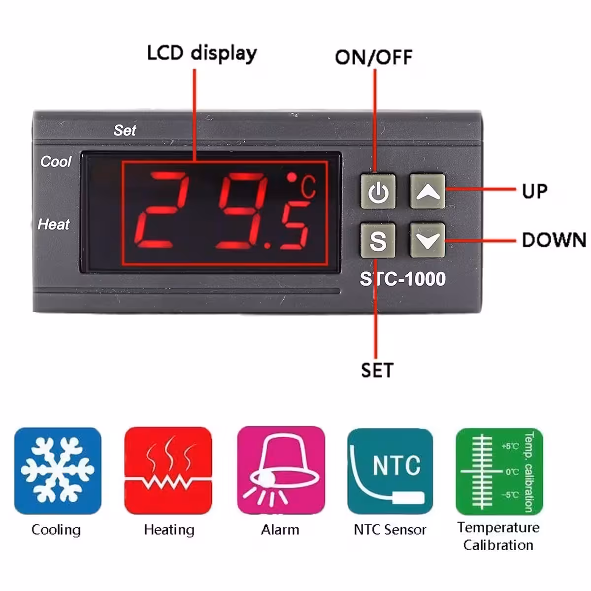 STC-1000 jest jednym z najpopularniejszych cyfrowych regulatorów temperatury, idealnym do projektów HVAC, lodówek, komór chłodniczych, fermentacji, sterowania grzejnikami oraz zastosowań przemysłowych. Działa przy zasilaniu AC 110–220V i zapewnia precyzyjną kontrolę w zakresie -50 do 99°C, wykorzystując wodoodporny czujnik NTC 10K.