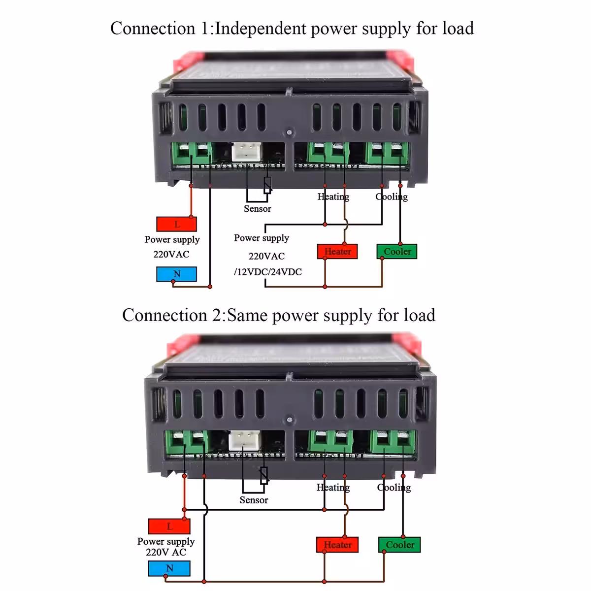 2 przekaźniki (grzanie/chłodzenie)