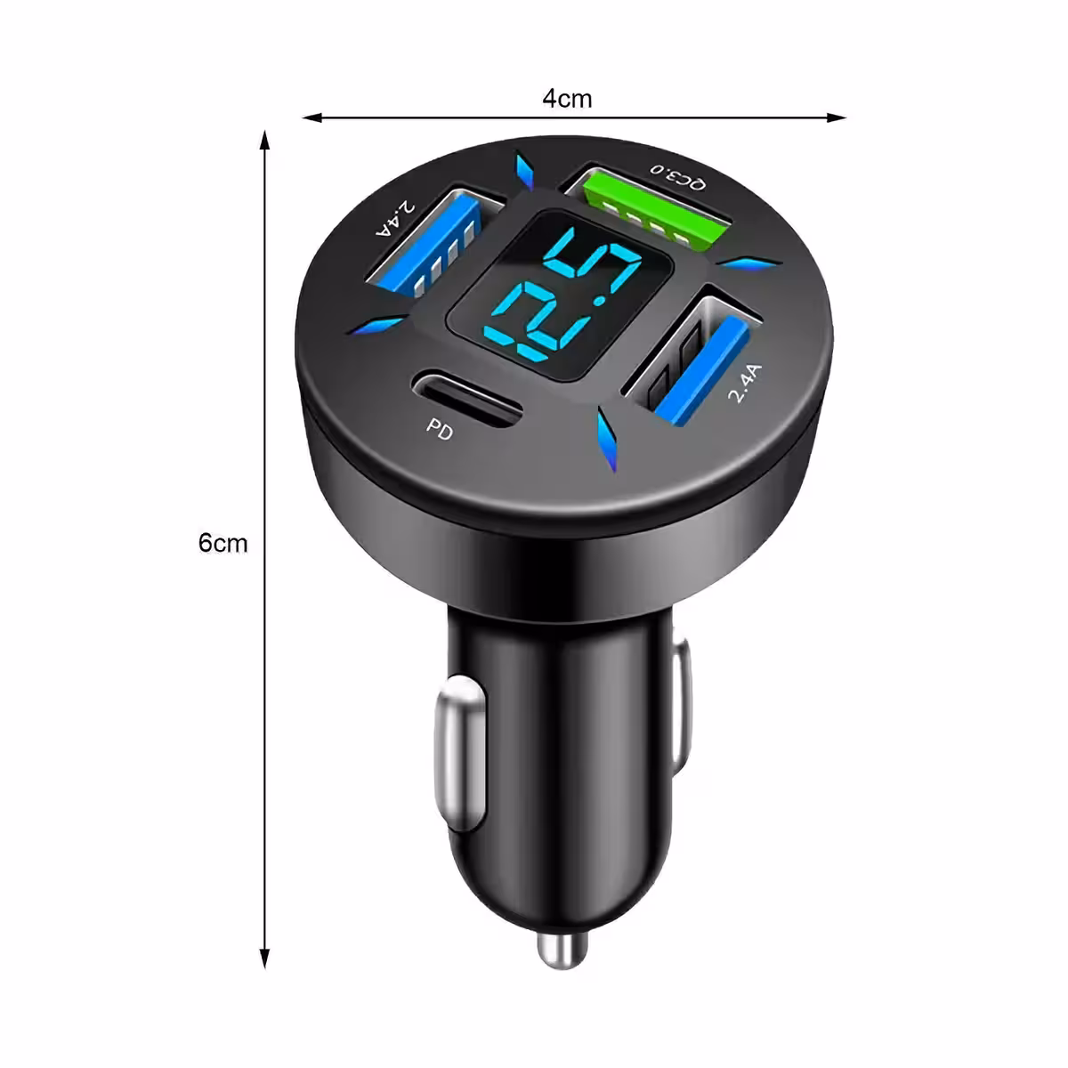 Ładowarka samochodowa USB Type-C PD Quick Charge z woltomierzem cyfrowym i 4 portami USB