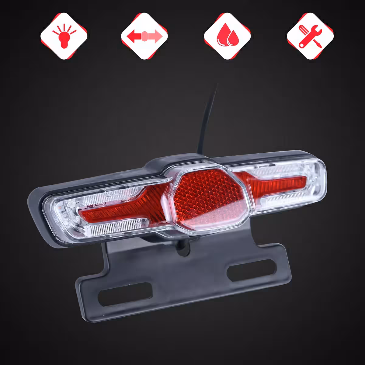 Wielofunkcyjna tylna lampa LED jest idealna do hulajnóg elektrycznych, rowerów elektrycznych oraz skuterów elektrycznych. Oferuje funkcje sygnalizacji lewo/prawo, światła pozycyjnego na noc oraz światła stop.