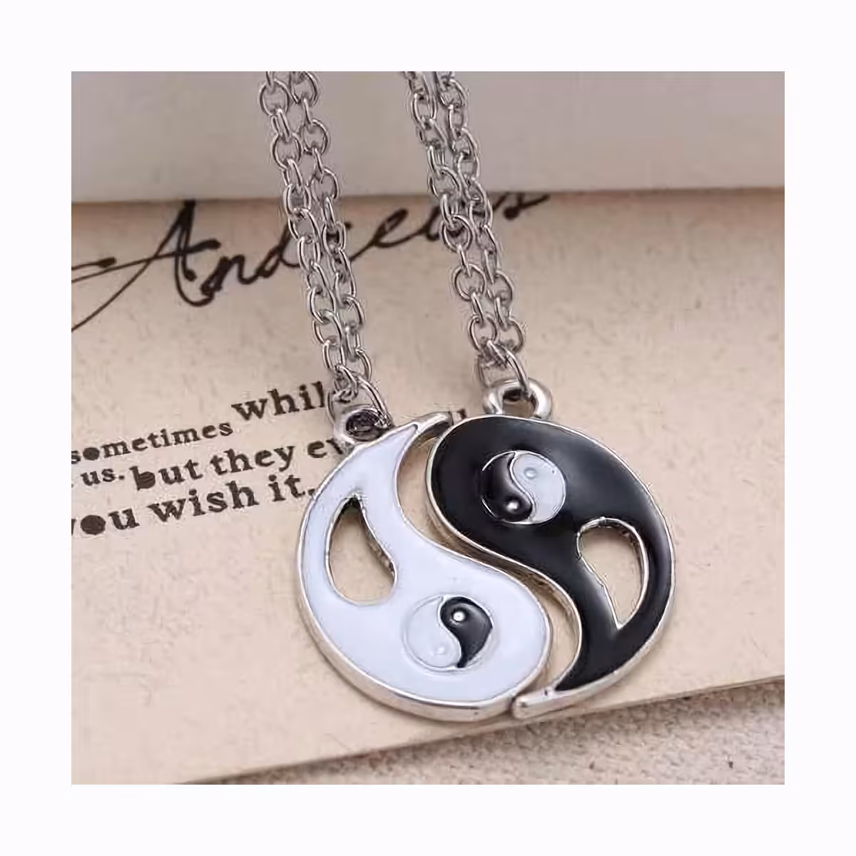 Yin i Yang to jeden z najpopularniejszych symboli taoistycznych i uwielbiany talizman na całym świecie. Ten zestaw łańcuszków i wisiorków Yin i Yang symbolizuje doskonałą równowagę przeciwstawnych sił, noszony przez miliony ludzi dla harmonii i ochrony.