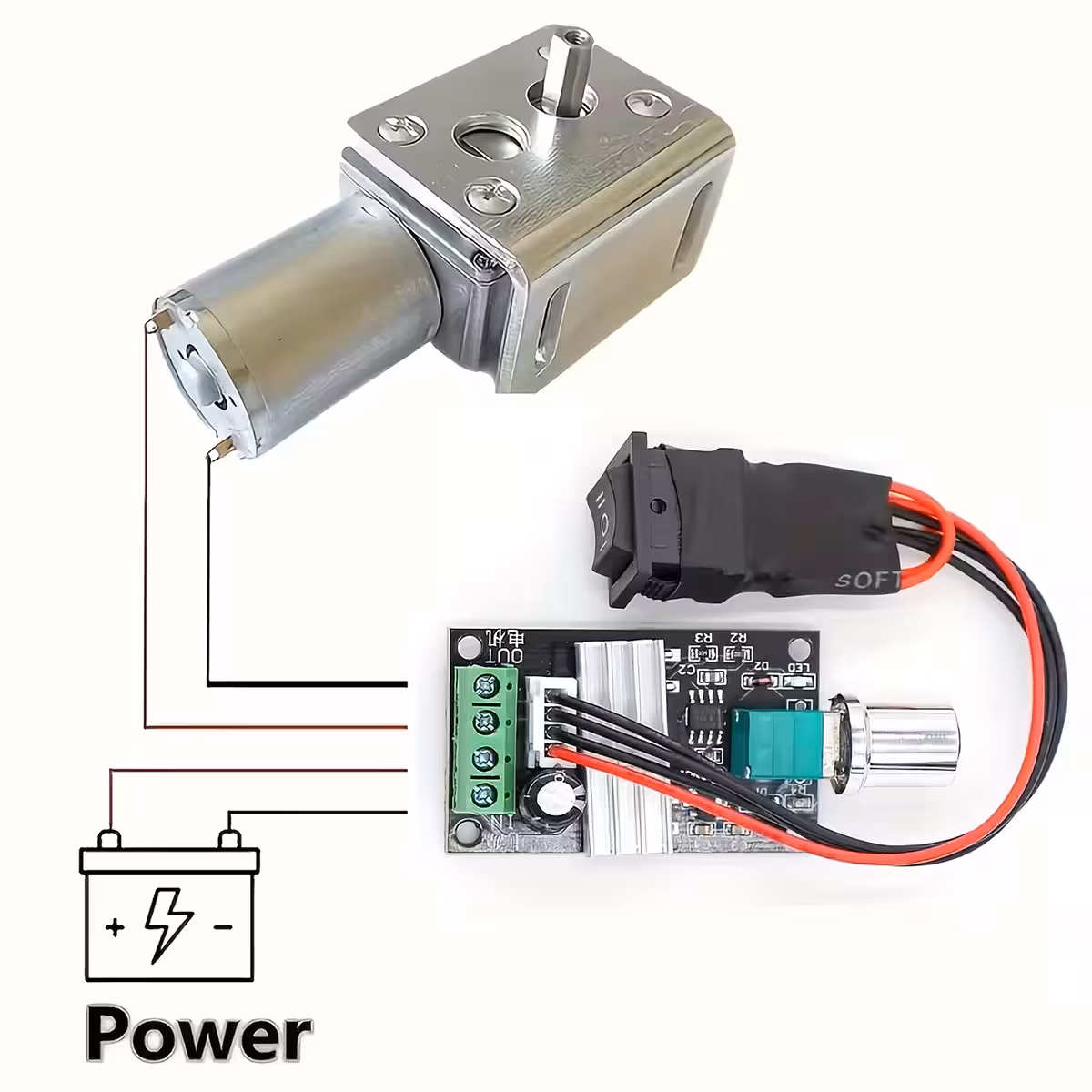 Wykonany z komponentów elektronicznych premium, ten regulator silnika DC zapewnia stabilność i trwałość, a funkcja przełączania oraz kontrola przód/tył ułatwiają obsługę.